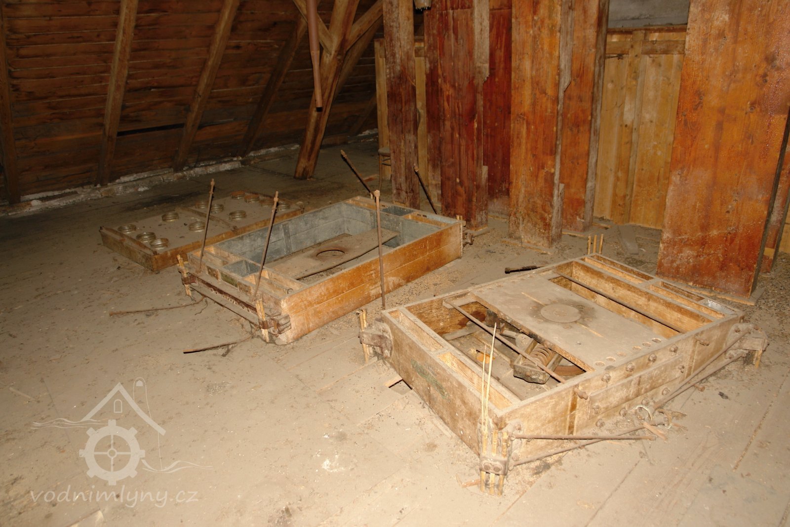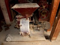 Mlýnská stolice v podzemí, 12.10.2015, © Radek, (Prvky na obrázku: válcová stolice, značka výrobce na technologickém vybavení)