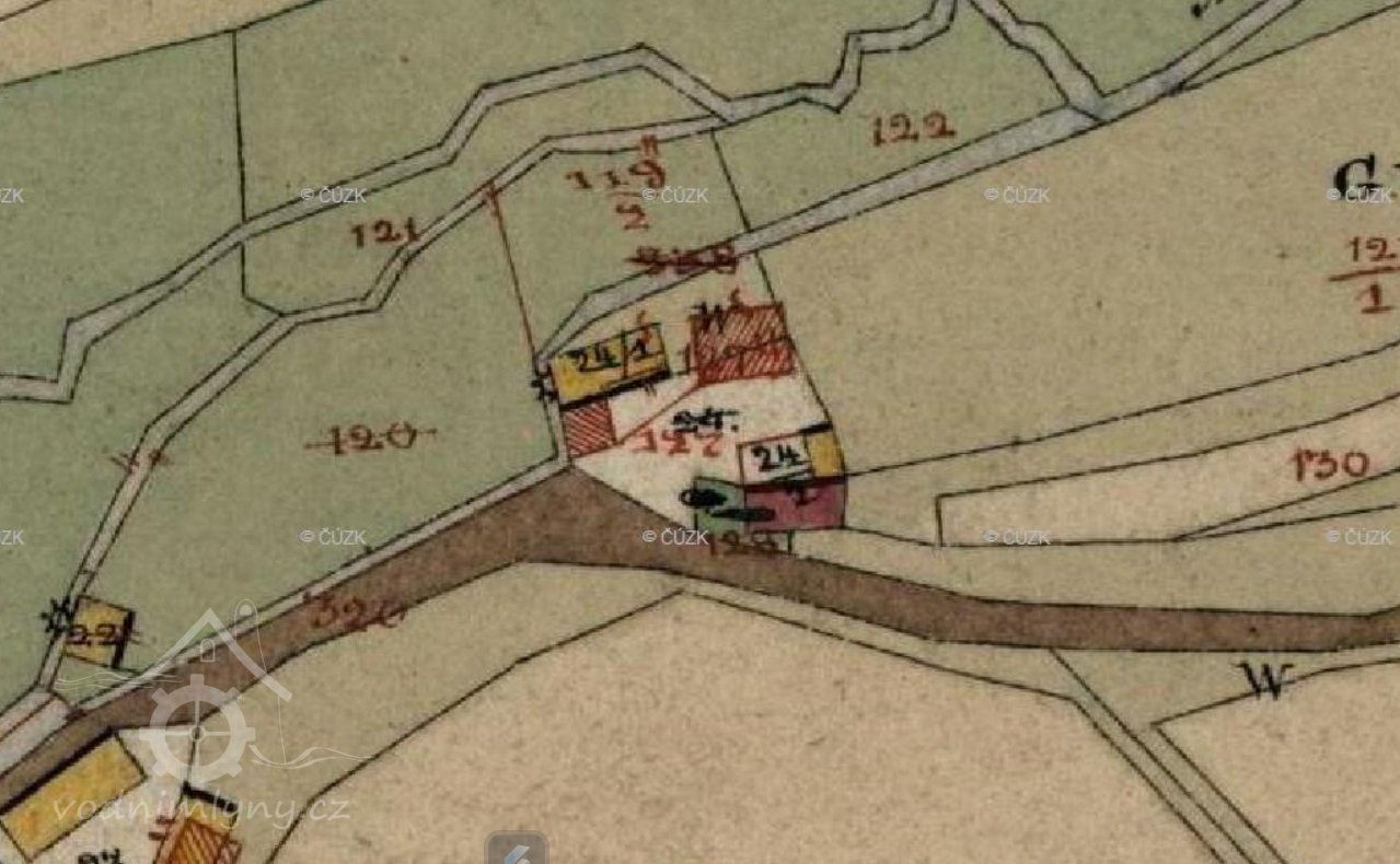 V Dotazníku k zápisu do Mlynářského rejstříku ke dni 18. července 1939 se ve zdejším mlýně uvádí vodní kolo „na svrchní vodu korečkové“ o průměru 300 cm a šířce mezi věnci 85 cm, které dávalo výkon 4,5 HP.