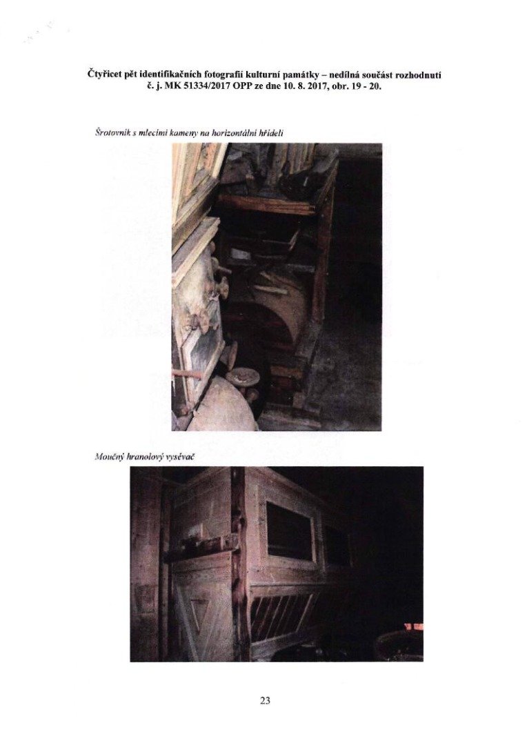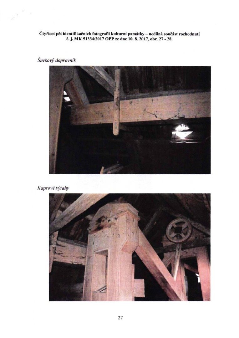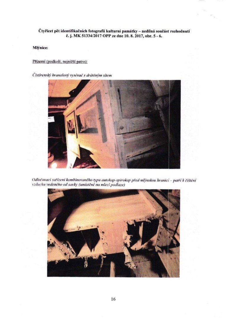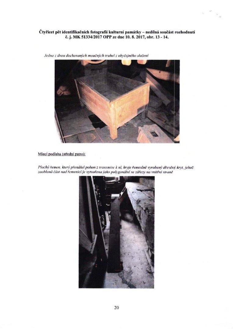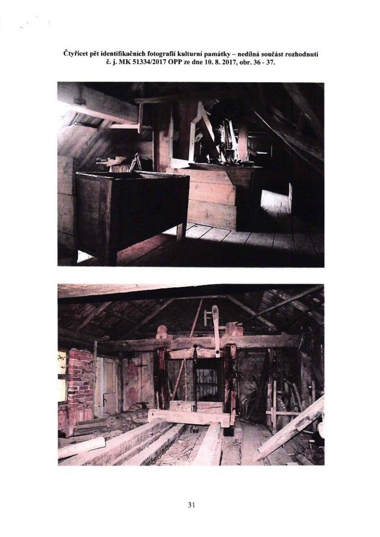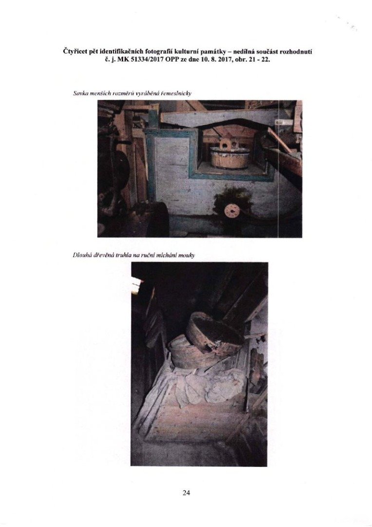 - pro úplnost uveďme, že je sem přenesena také další z dvou dochovaných moučných truhel a na podlaze leží žejbro (mechanicky pohybované síto), obojí z obyčejného složení; zmíněné žejbro je dle hustoty drátěného potahu druhotně upravené pro potřeby čištění obilí