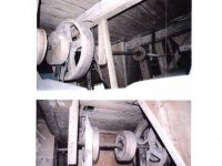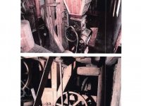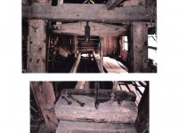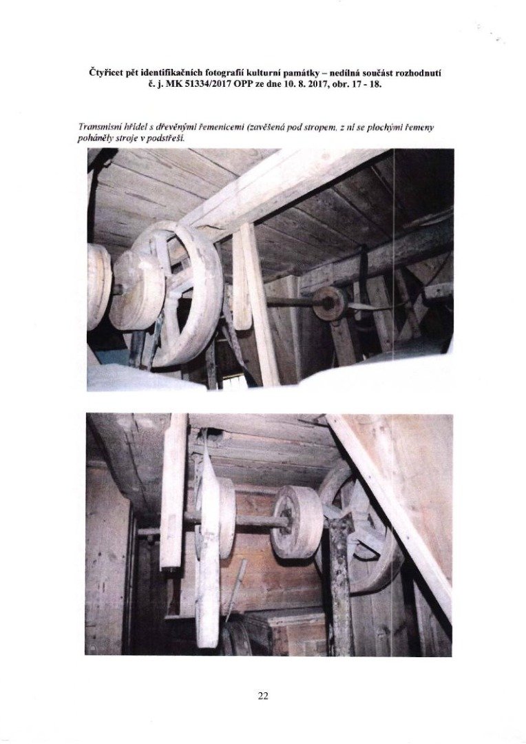 - transmisní hřídel s dřevěnými řemenicemi a s jednou litinovou řemenicí
