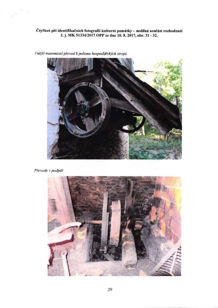 Pozornost si zaslouží i transmisní převod k pohonu hospodářských strojů do prostoru objektu stodoly. Zmíněná transmisní hřídel má dochované i dva kardanové klouby. Bylo by však přehnané kvůli uvedené transmisi rozšířit podání návrhu na prohlášení a kulturní památku i na objekt stodoly s chlévem a sklepem.