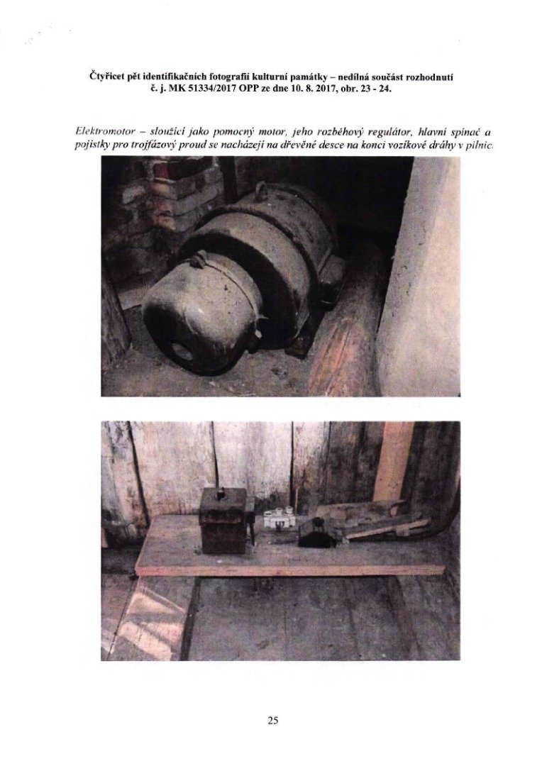 elektromotor - sloužící jako pomocný motor (jeho rozběhový regulátor, hlavní spínač a tři pojistky pro trojfázový proud se nacházejí na dřevěné desce na konci vozíkové dráhy v pilnici