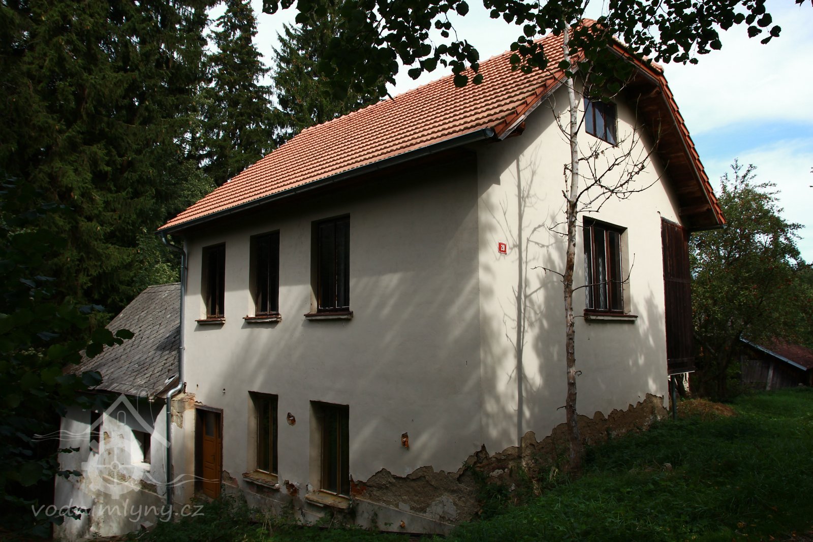 Třípodlažní mlýnice přímo navazuje na obytnou budovu čp. 28, z jejíž průchozí předsíně je přístupná.