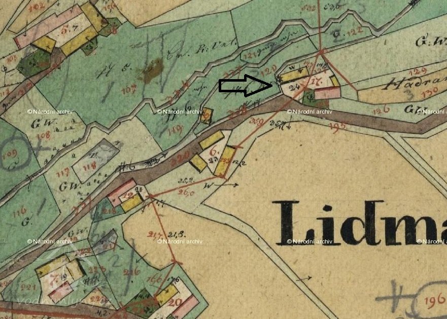 Mlýn čp. 28 s pilou v Lidmaňce vychází z trojdílného uspořádání s mlýnici v rámci třetího dílu. V přestavěném druhém dílu stále ještě lze rozeznat síň. V její stěně směrem k bývalé světnici se v místě, kde se dříve nacházela s velkou pravděpodobností dýmníková (zvaná též černá) kuchyně, je dochovaný zazděný otvor chlebové pece s odtahem přímo do nynějšího tahového komína.
