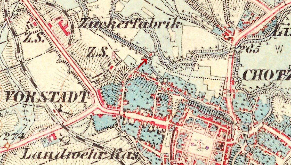 Na tomto místě pravděpodobně stával mlýn zvaný Nejspodnější, 1435 zmíněna část zahrady u Nejspodnějšího mlýna.