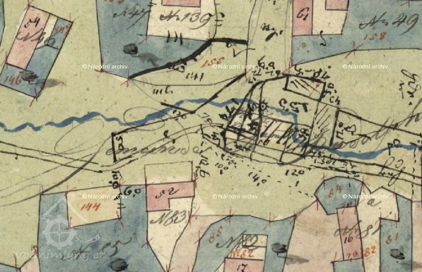 PopisV r. 1930 zde bylo 1 kolo na svrchní vodu, průtok 0,097 m3/s, spád 5,5 m, výkon 4,6 k. (RR)