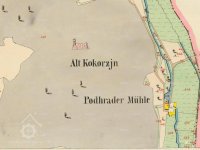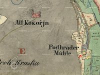 Potok Klokoč utvořený z 3 pramenů Vrutického, pod Hájkem a pramene Klokoč svěcený, kteréžto pra-meny se asi 1/4 hodiny nad mlýnem stékající a mlýn pohánějící. Podhradí čp. 9, mlýnek s jedním složením přímo na Krušeneckém potoce pokud by bylo více vody, než je třeba na kolo, rozlévá se do louky.