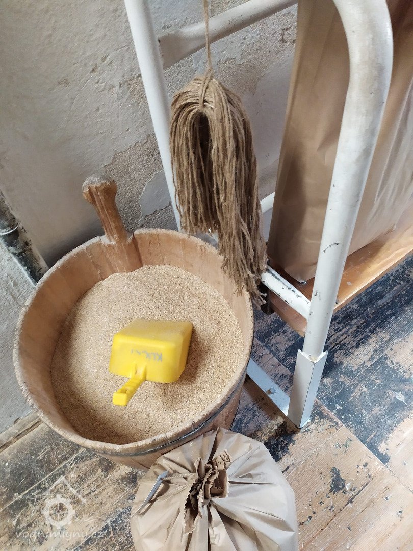 Mlýn, který stále mele obilí na mouku. Bohužel přišel o možnost využívat vodní energii a tak pracuje na elektřinu.