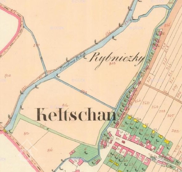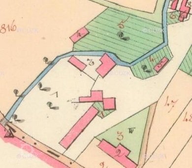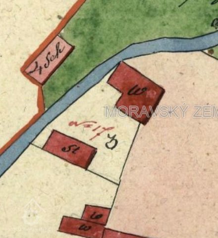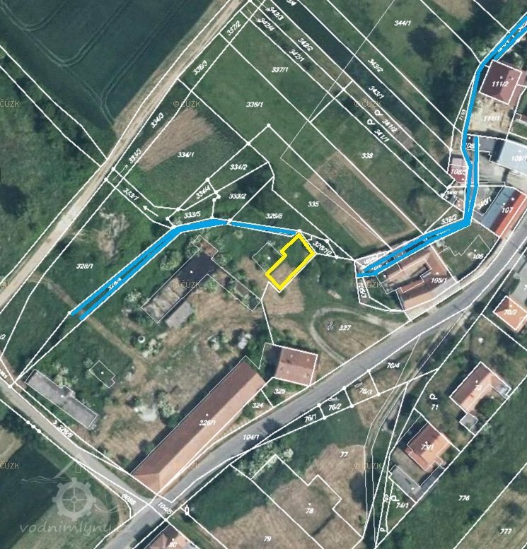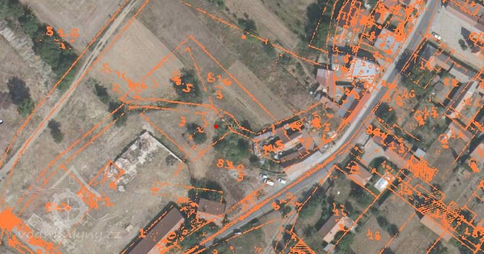 Mlýniště bez mlýna. Zachován násep, po jehož koruně byla přiváděna voda ke kolu betonovým, částečně dochovaným korytem.