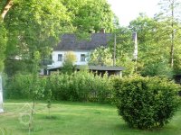 Velký mlýn stojí na levém břehu Úterského potoka uprostřed velké zahrady zarostlé stromy.