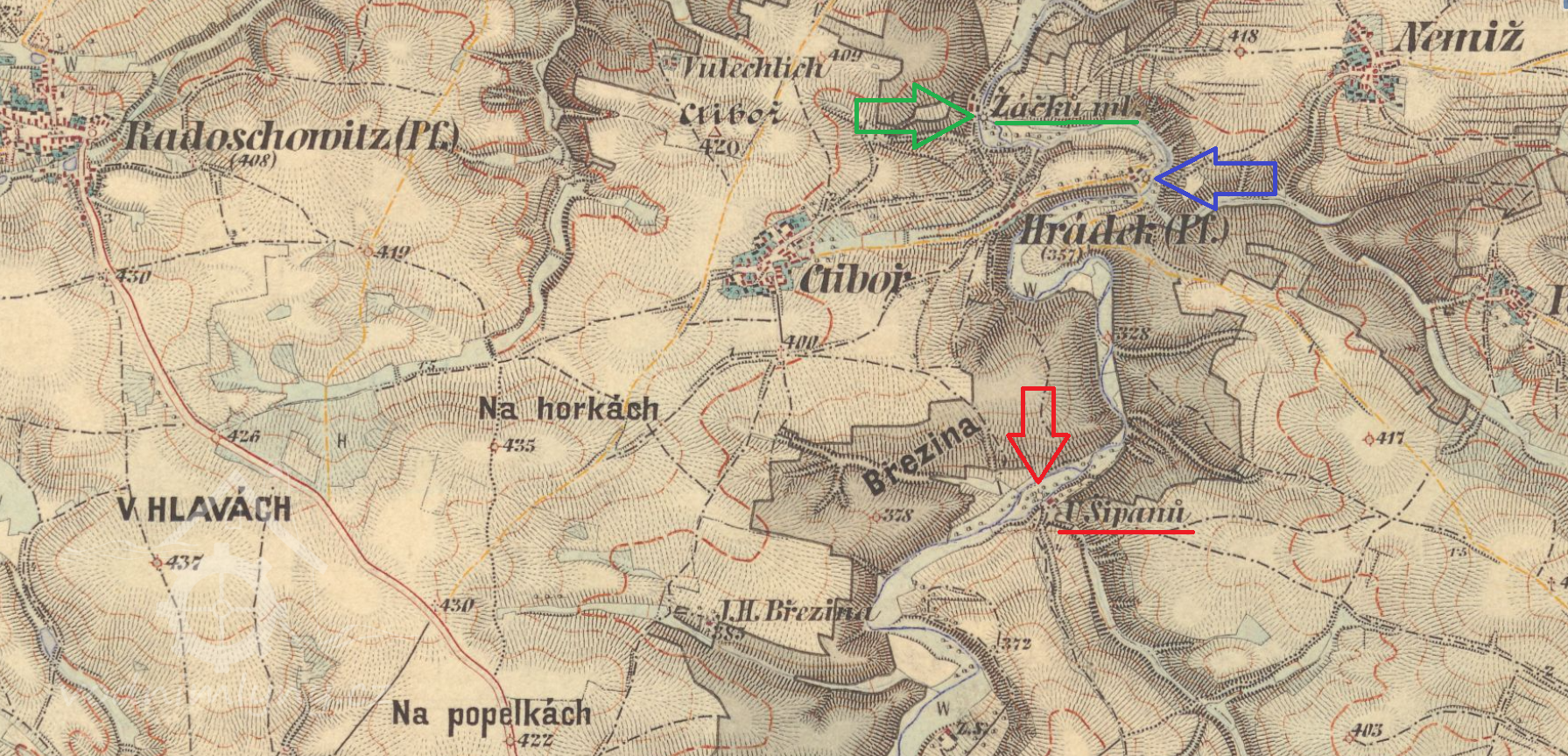 500 m severně od kostela sv. Matouše v Hrádku u Ctiboře