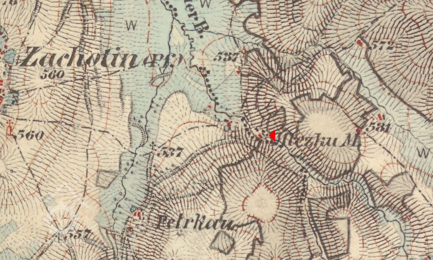 Vlčkův mlýn na Polánkách původně patřil k Dudínu, pak k Opatovu, později opět k Dudínu a nyní k Zachotínu. Jde o velmi starý mlýn, který existoval asi už před třicetiletou válkou. Berní rula pro Dudín z r. 1654 uvádí na tomto mlýně o jednom kole Jiříka Hernu, patří mu 20 strychů polí, ale osévá pouze 3 strychy na zimu a 3 na jaro, chová 2 voly, 5 krav, 2 jalovice a 2 svině. R. 1674 už tu je nový mlynář Jan Vlček, ale jeho mlýn o 1 kole je „pustý“. Má pouze 10 strychů polí, z nichž osévá 2 strychy na zimu a 3 na jaro, dále má 2 strychy úhorů, 3 strychy lad a luk na půl vozu sena. Z dobytka chová pouze 2 voly a 2 krávy, obojí najaté.