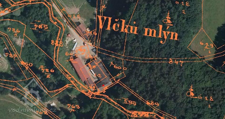 V knize vodního práva okresu Humpolec je vložen protokol ze 17.6.1891 o stanovení vodního cejchu na mlýne zvaném „Vlčkův mlýn“ s pilou vlastníka Josefa Trupla, z něhož vybíráme: „Mlýn s pilou č. 48 v Dudíně, dříve č. 1 v Opatově, leží na pravém břehu Jankovského potoka. Ke mlýnu a pile vedou dva mlýnské náhony. U dolního mlýnského náhonu není na jeho počátku, kde se od potoka odděluje, žádný splav neb jez, nýbrž toliko nához kamene, který se voda hradí. U horního náhonu, který vede k pile, jest na počátku téhož v potoce splav, však zpustošený a sešlý. Mlýn má jedno mlýnské složení a čtyři stoupy na kroupy, pak pilu ve zvláštním stavení nad mlýnem. Celkem jsou 3 vodní kola na svrchní vodu, z nichž kolo na mlýn má průměr 3,54 m na šířku 0,50 m, kolo na stoupy průměr 2,27 m na šířku 0,50 m a kolo na pilu průměr 3,60 m na šířku 0,56 m.
