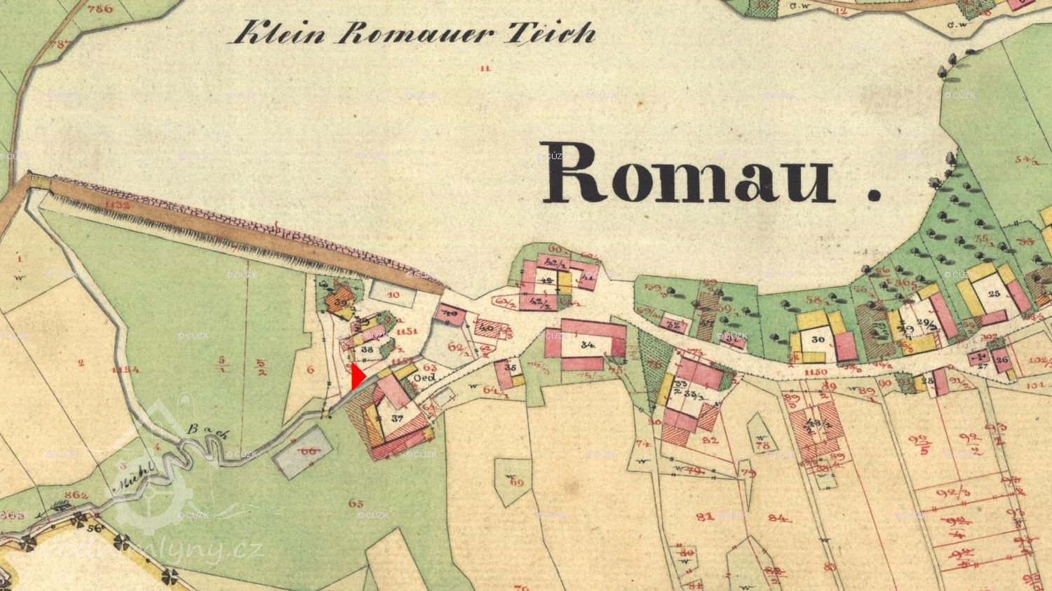 V roce 1869 je doležen sčítacím archem na čp.23 v Romavě mlynář Freitag.