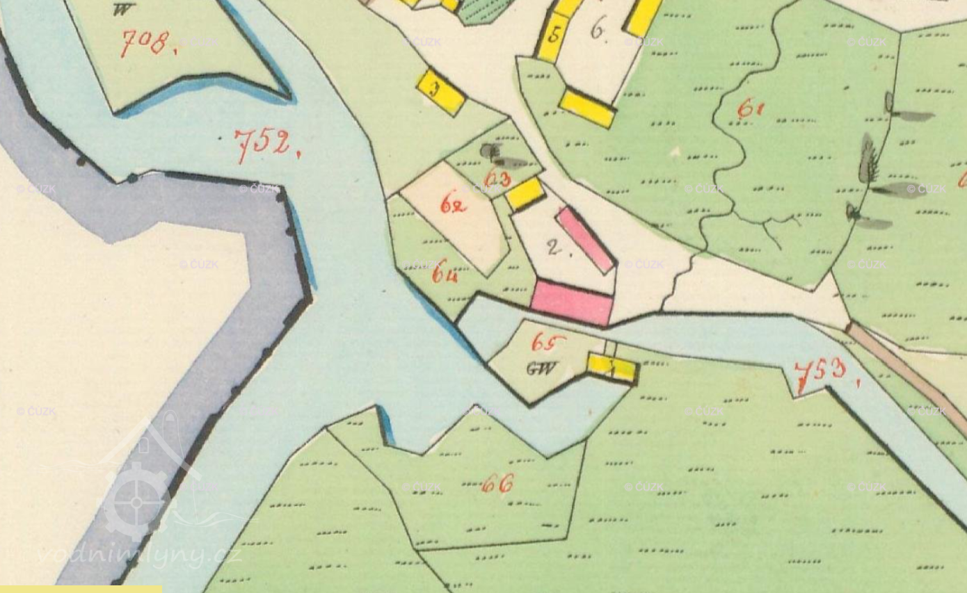 Popis1950 vodní kolo na spodní vodu, prům. 6 m