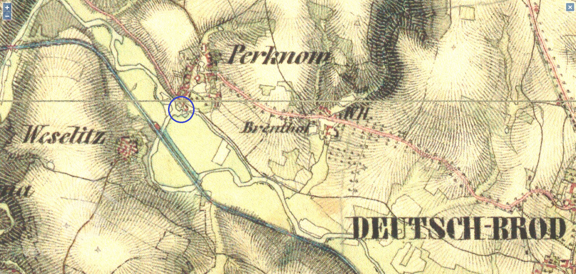 Vznikl již před rokem 1598, kdy je v Knihách trhových (MZA, SOkA HB) uváděn Mikuláš, mlynář perknovský.
