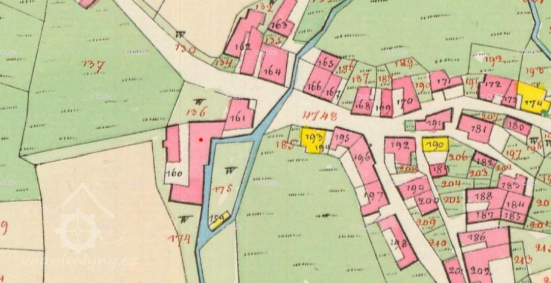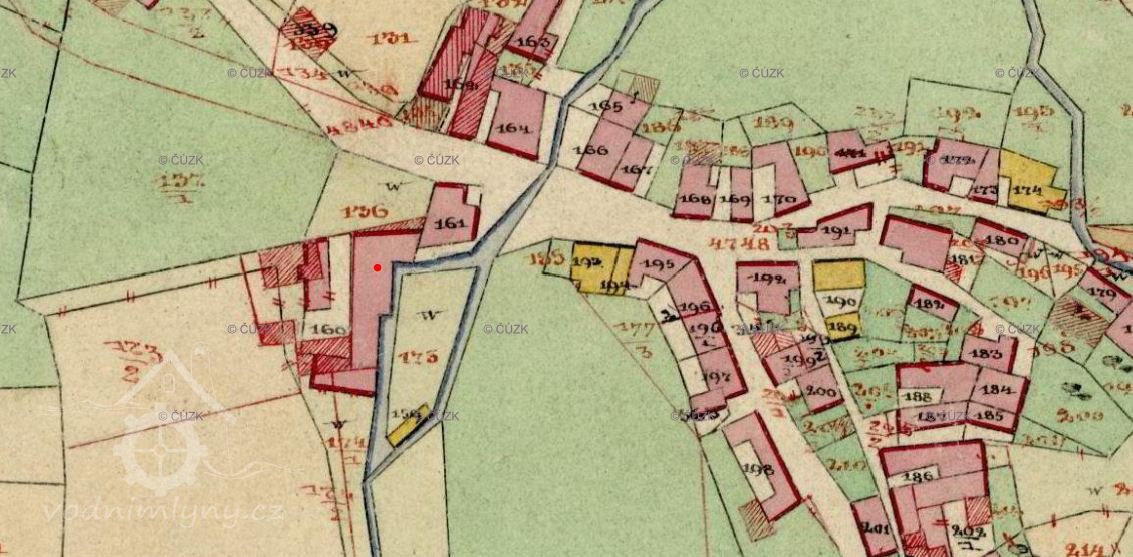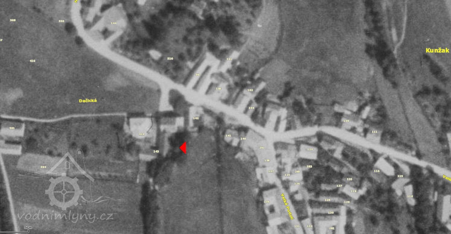 Voda šla pravděpodobně dlouhým náhonem do nádržky nad mlýnem, od které pokračoval náhon ke mlýnu