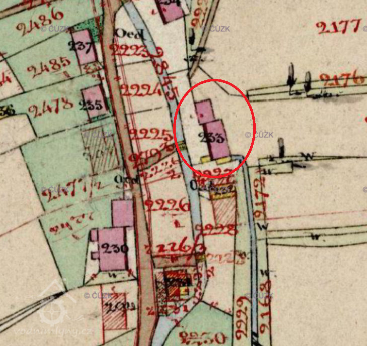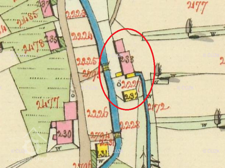 Popis1930: 1 kolo na svrchní vodu, hltnost 0,072 m3/s, spád 7,2 m, výkon 4,5 HP