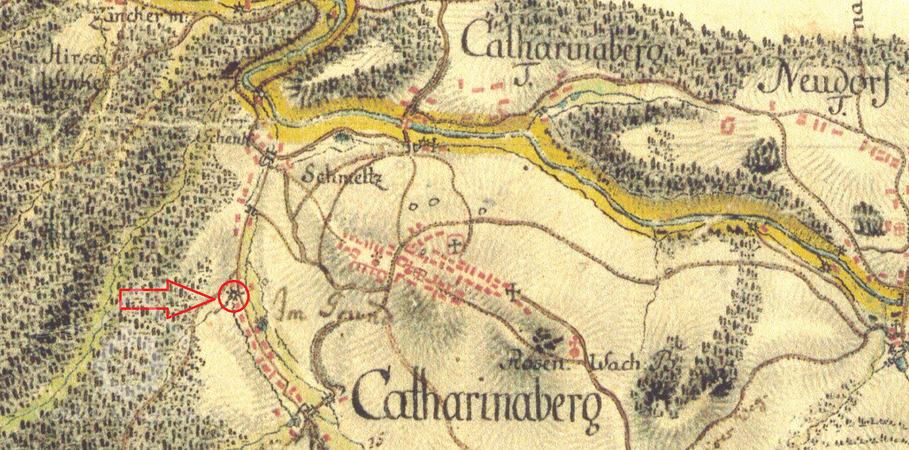 470 m západně od kostela sv. Kateřiny v Hoře Svaté Kateřiny