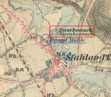 1710 zde postavena vysoká pec zvaná Bambousek, 1716 přistavěn hamr, po pol. 19. stol. přebudován na mlýn, později výroba sirek, kolářská a truhlářská dílna, zničená povodní 1954. V nedávné době přebudován pro rekreaci, bohužel nepříliš citlivě.