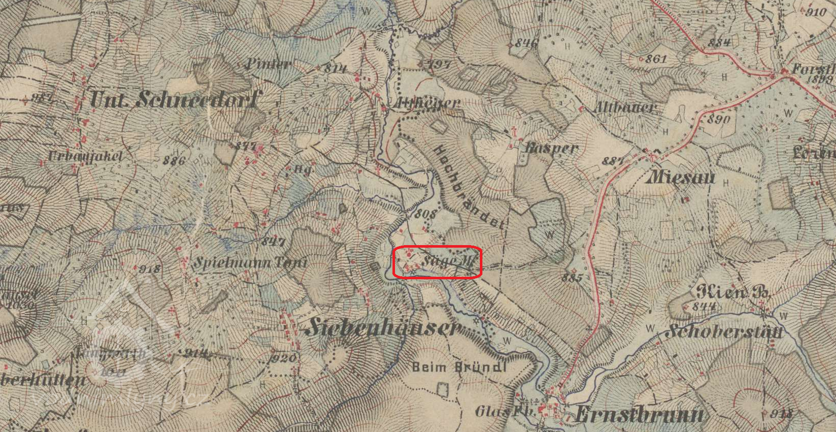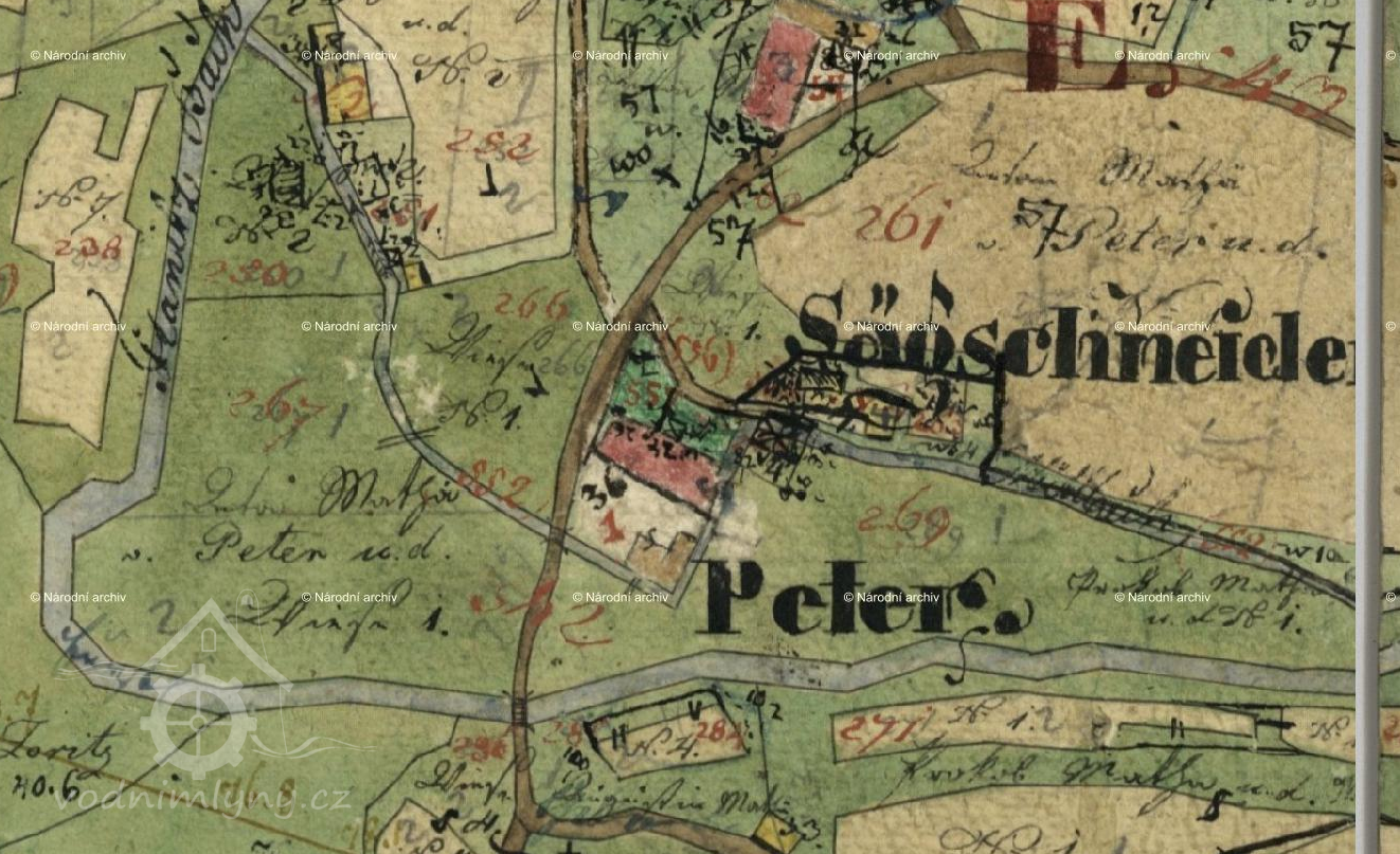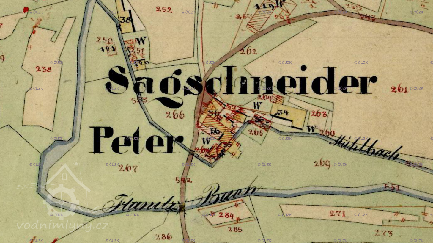 Nejvýše položený obilní mlýn na Blanici, v tzv. Mlýnském koutě vytvářel komplex se sousedním hamrem čp. 2. Mlýnice zbořena po II. sv. válce, zachováno obytné stavení a budova pily. Ještě 750 m výše proti proudu ležela Rauscherova pila (dnes rovněž zaniklá), která byla vůbec prvním vodním dílem na toku Blanice.
