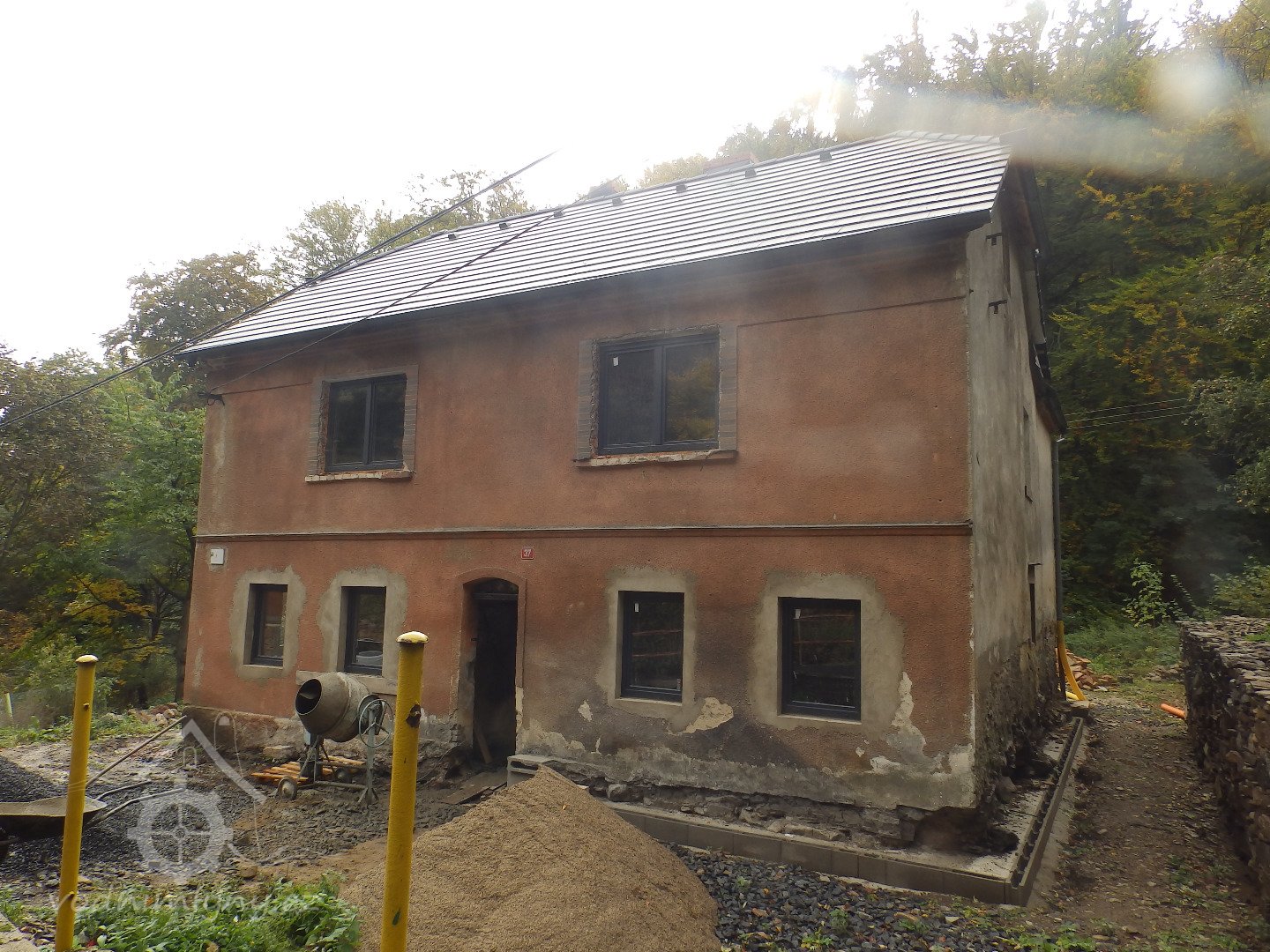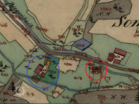 Horní mlýn s novější pilou v Rýznburku. Mlýn dnes prochází rekonstrukcí, z pily zůstala jen mohutná hráz z kvádříkového zdiva.