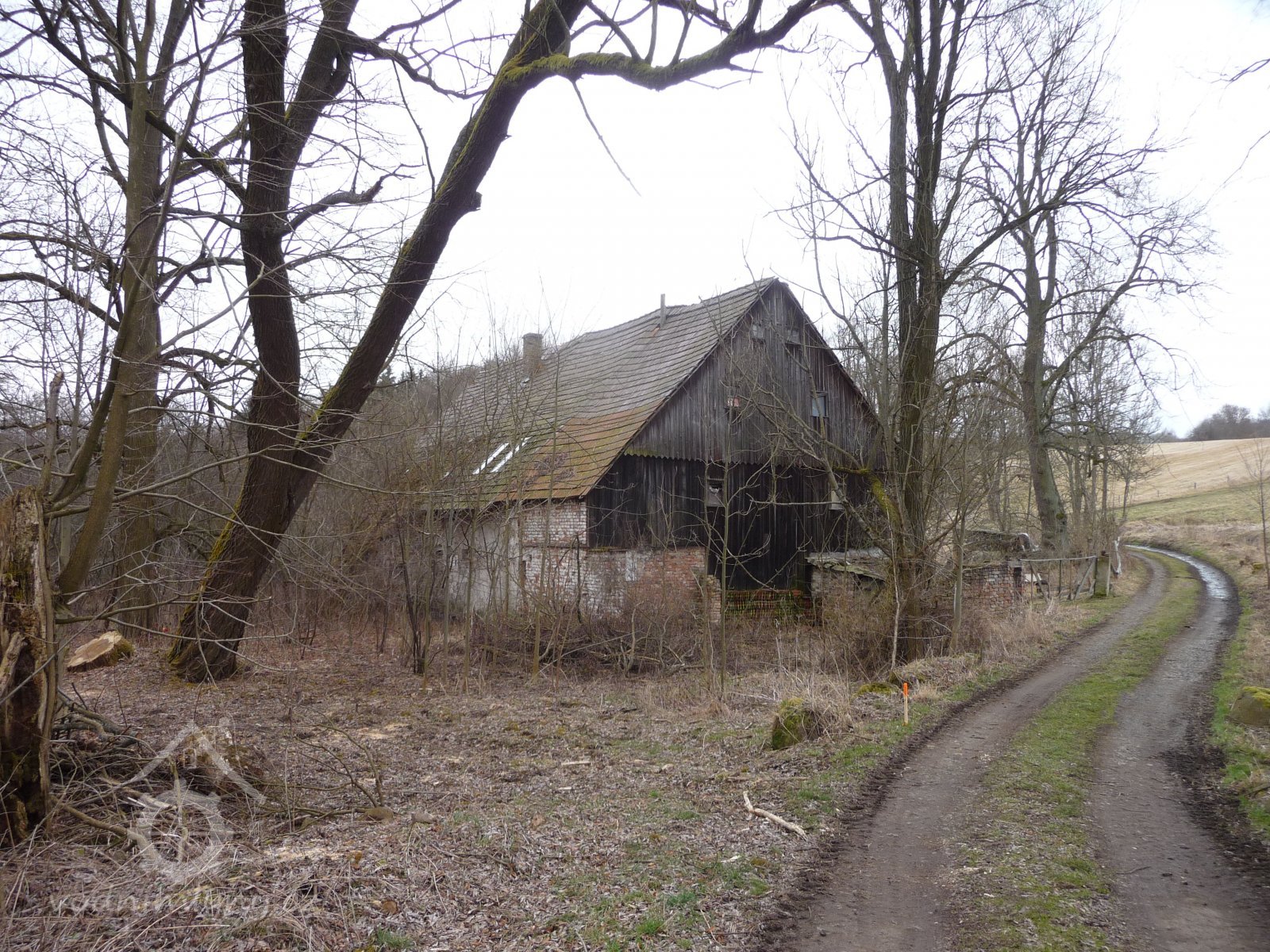 Pohled na zbytek zdi směrem k lednici ze současné příjezdové cesty k elektrárně, 22.3.2016, © pepino