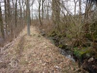 Náhon u silnice, náhon vedl k oběma mlýnům v Janovicích, 2016, © Helena Špůrová, (Prvky na obrázku: náhon)
