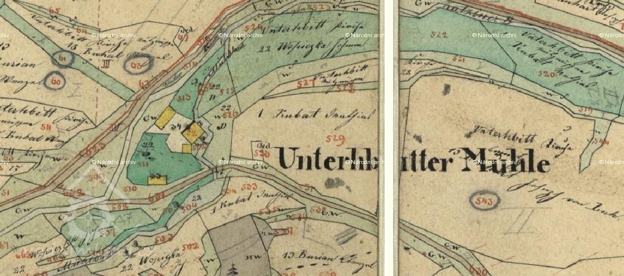 Indikační skica, výřez, 1839, © viz http://archivnimapy.cuzk.cz/