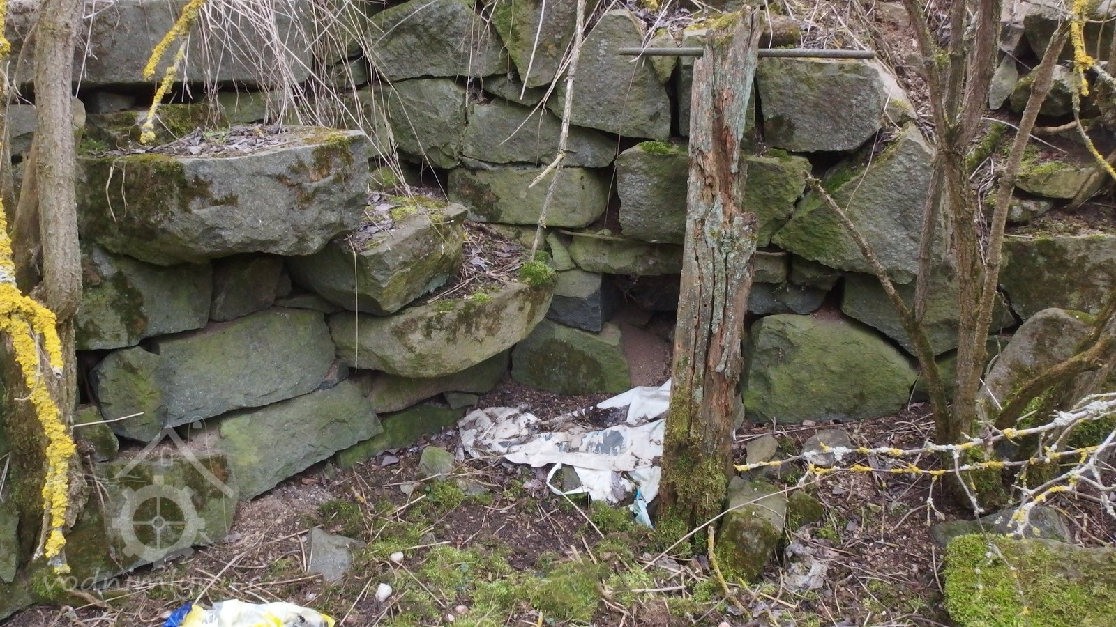 Prostup pro hřídel vodního kolo v částečně zasypané lednici, 2016, © Šimek, (Prvky na obrázku: prostup pro hřídel vodního kola)