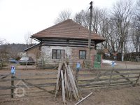 Na dvoře stojí mlecí kámen, používaný k ručnímu broušení nářadí.