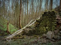 Opuštěné ruiny zakryté větvovím vysokých stromů, potok, zapomenutá formanská cesta a úzká pěšina vysoko nad Vámi, ze které lze snadno přehlédnout zpustlé zbytky hlavní budovy, náhonu i místa, odkud dávno zmizelo mlýnské kolo. Roku 1930 vlastnil mlýn Hermann Klemm, po roce 1945 zůstalo místo opuštěno. V polovině let šedesátých se již nacházelo v troskách. Dnes jsem zde strávil hodně času, ani ne tak kvůli několika obyčejným snímkům, ale především z respektu a úcty k práci generací lidí, kteří odsud prakticky ze dne na den zmizeli v nevinné nevědomosti toho, že je už nikdy nenahradí jiní.