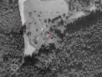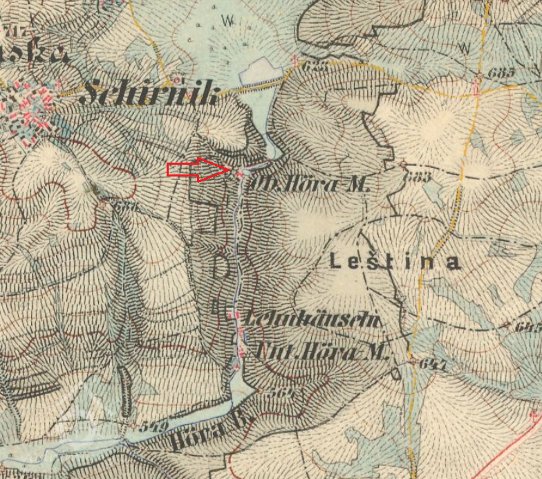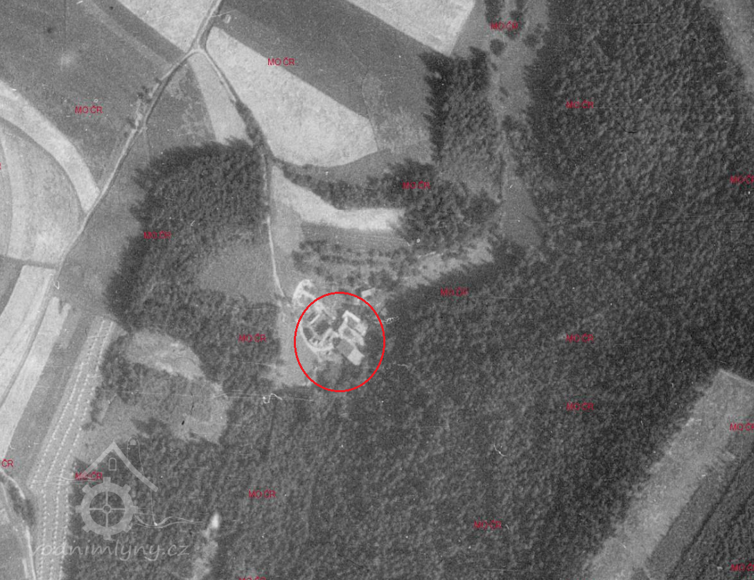 1839 - budova ze spalného materiálu ve tvaru písmene L s vodním kolem na východní straně.