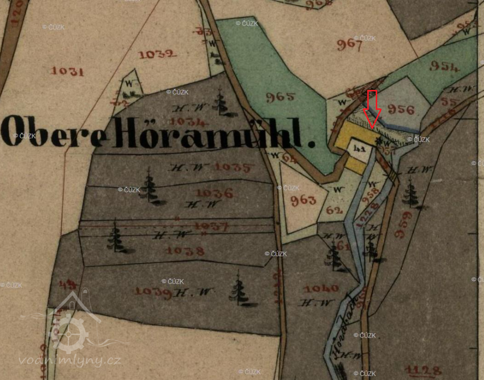 Popis1930 – 2 kola na vrchní vodu, hltnost 0,06 a 0,07 m3/s, spád 6,9 a 5 m, výkon 3,6 a 3,0 HP