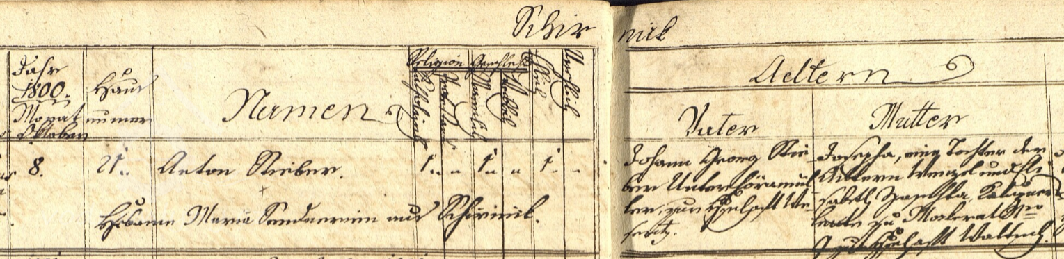 Rok 1805 zde zastihl mlynáře Josefa Rödlinga s manželkou Theresií, v záři 1805 se zde páru narodil syn Anton.