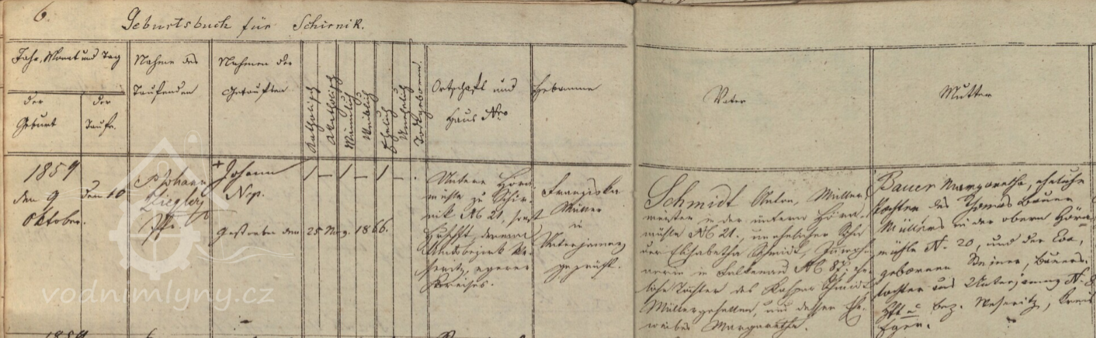 Untere Höramühle čp. 21 převzala mlynářova dcera Margaretha společně se svým manželem Antonem Schmidtem. Manželé Schmidtovi zde hospodařili přibližně od poloviny 50. let 19 st., kdy zde postupně pokřtili děti Josefa (květen 1855), Petra (únor 1857), Johanna Nepomuka (říjen 1859 - květen 1866) a Wenzela (leden 1863).