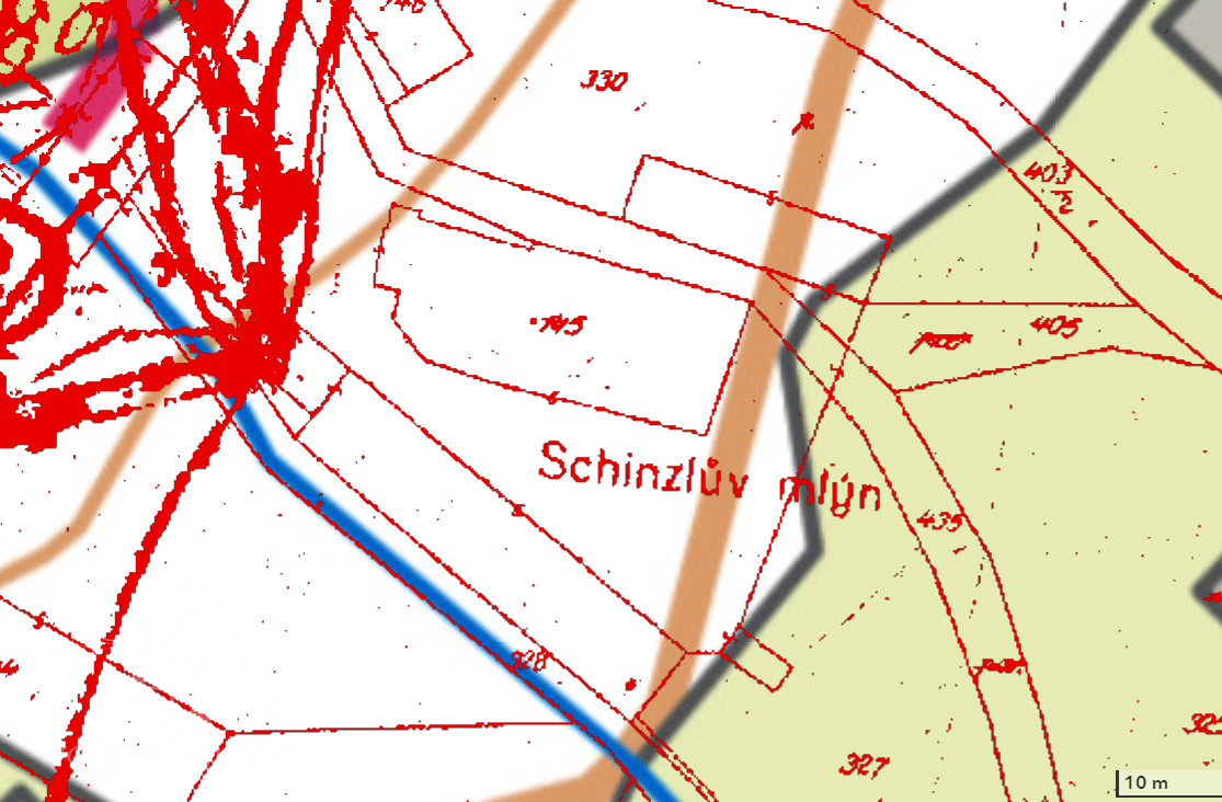 Mlýn na severním okraji katastru, zbořený po roce 2009. Mlýniště leží v soukromé zahradě.