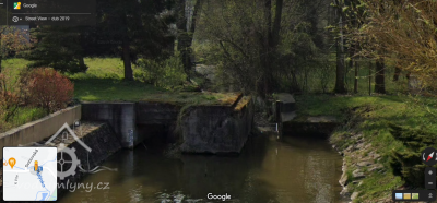 Zaniklý velký umělecký mlýn, zachován zbytek turbínových kašen na náhonu, mlýniště se nachází v soukromé zahradě.