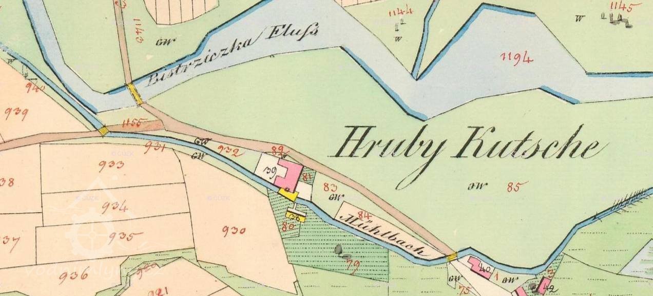 1909 odkoupen i s vodním právem cukrovarem v Dřevohosticích, náhon zaústěn do Moštěnky v blízkosti cukrovaru