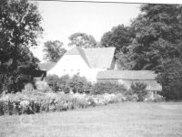 Přes silnici, která vede po bývalém mlýnském nádvoří, uzavřené hospodářské stavení (severní starna dvora), základy má v rybníce.
