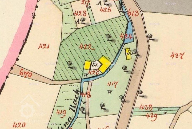 1800 prostř. syn František Kozák mlýn č. 1 s 20 M zem. pozemků za 600 zl. rýn.