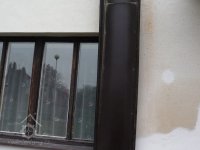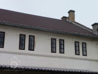 Omítka mlýna je zdobená římsou, kolem oken jsou rovněž římsy.