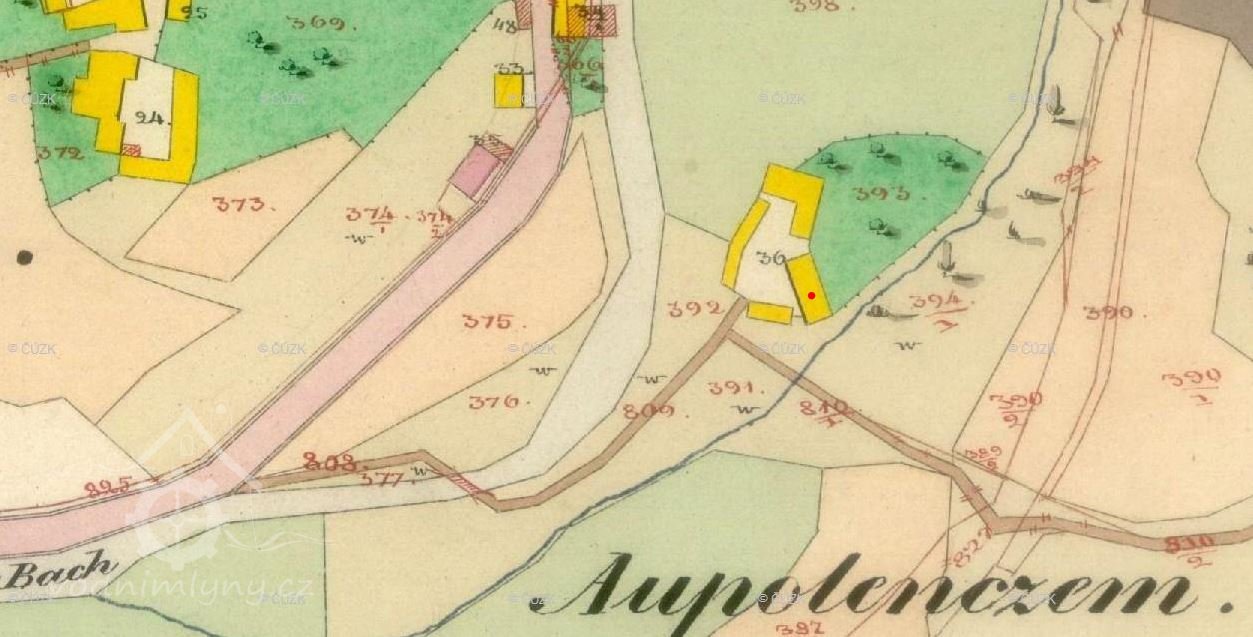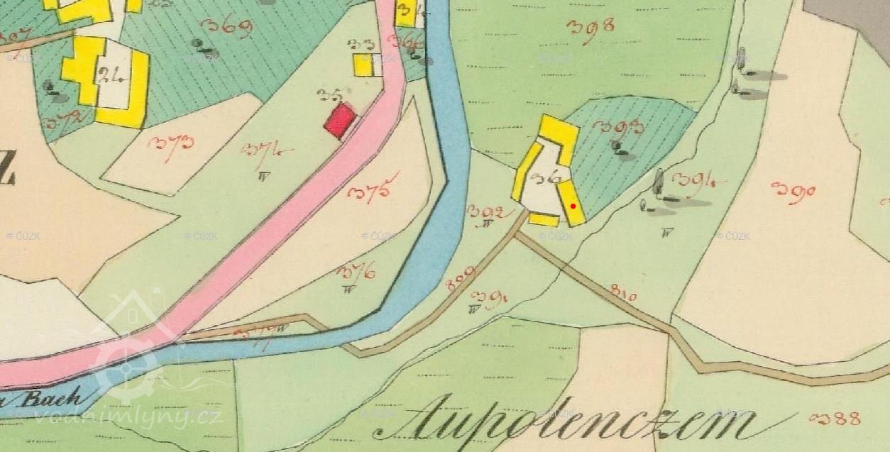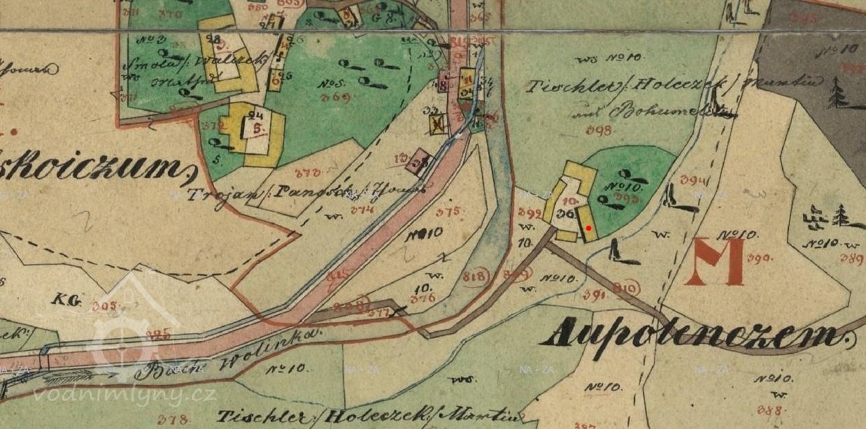 Jako mlýn začalo stavení pracovat až po roce 1837. Na Indikační skice není vyznačna značka vodního kola, ani vodní tok neteče kolem domu. (RŠ)