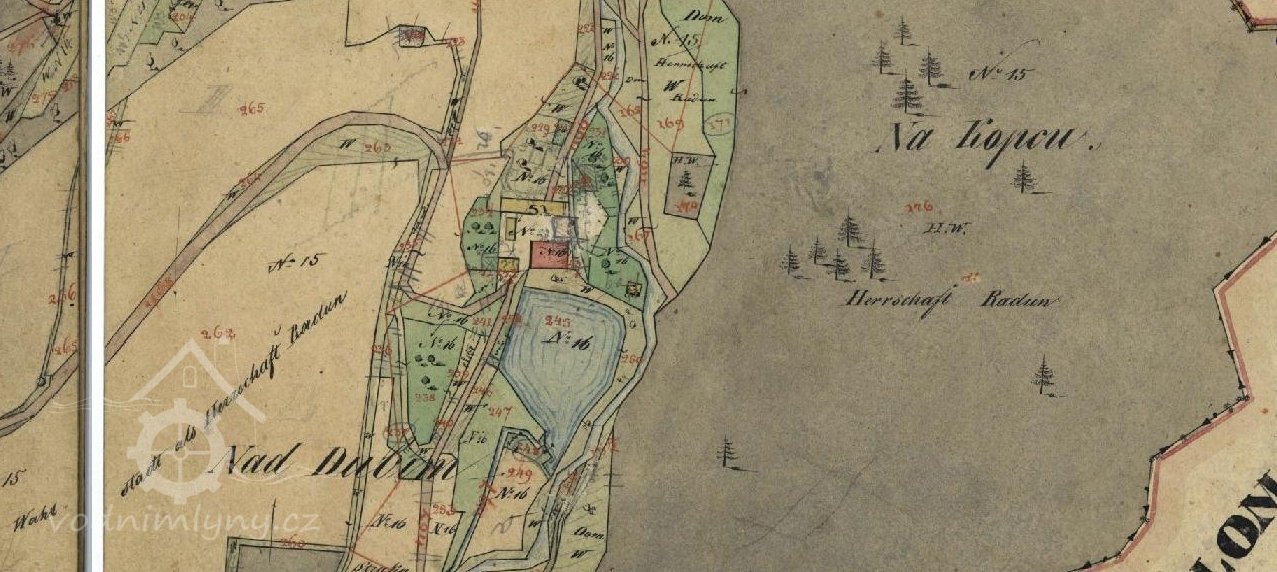 V roce 1836 vlastnil mlýn Sebastian Straka, původní č.p. bylo 16.