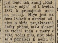 19.12.1884 nařízena exekuční dražba, vadium 1461 zl.
