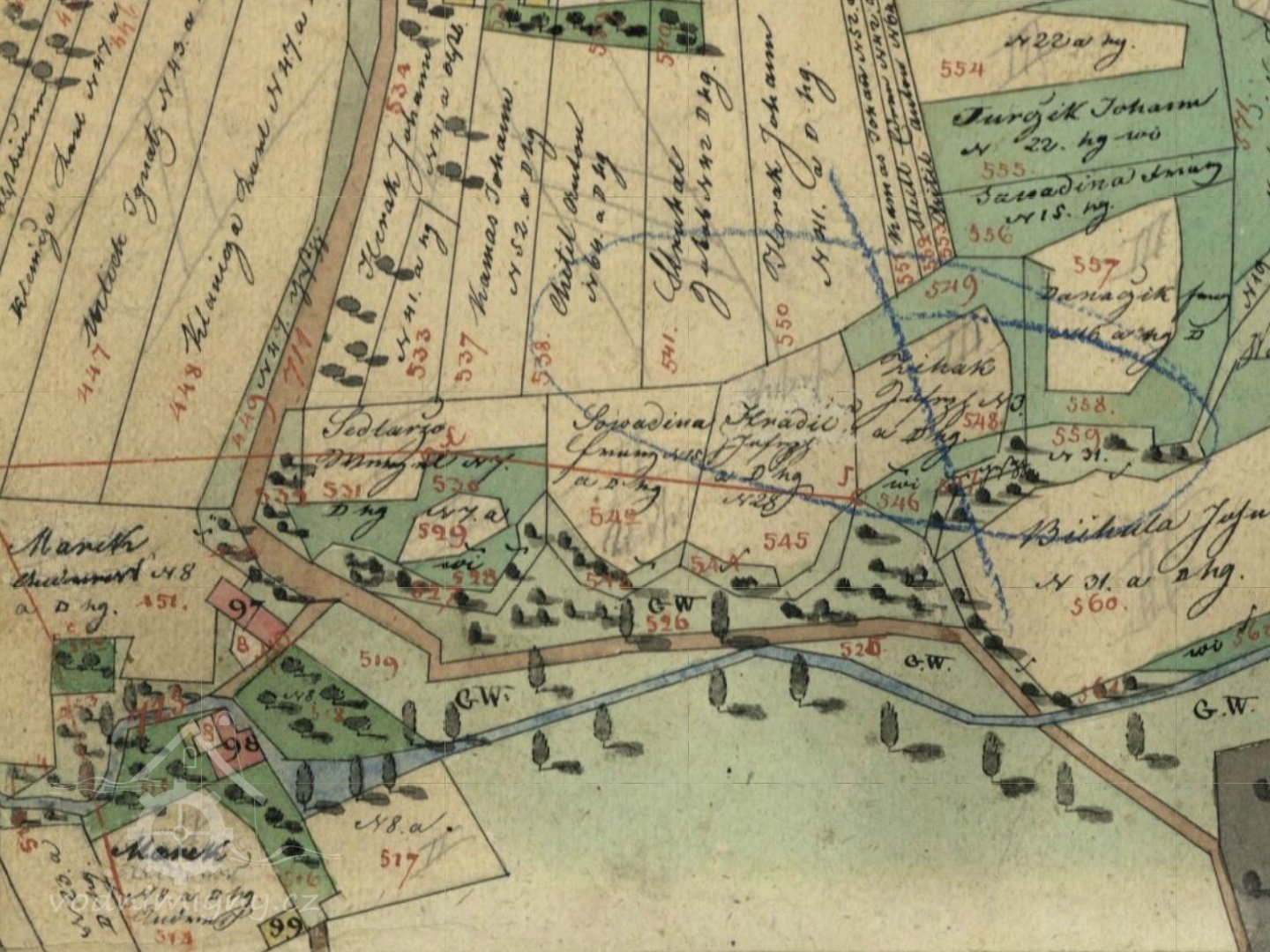 Moje zápisky: V mlynářském řemesle pokračoval syn Ondřeje (dříve psáno Andreas, 1770 - 1832) pokračoval jeho syn František Marek (nar. 3. 2. 1817) a vnuk Ondřeje Josef Marek (7. 4. 1855). Dcera Františka Marka Mariana (1853 - 1933) se provdala do Turovic a její syn Oskar Nesvadba (1880 - 1938) se vyučil mlynářem u svého strýce Františka Marka. Oskar Nesvadba si v roce 1906 pronajal od akciového cukrovaru v Dřevohosticích mlýn. Zpočátku ještě mlel mouku a loupal v "kašníku" proso. Později jen šrotoval obilí většinou pro tažné voly cukrovaru.