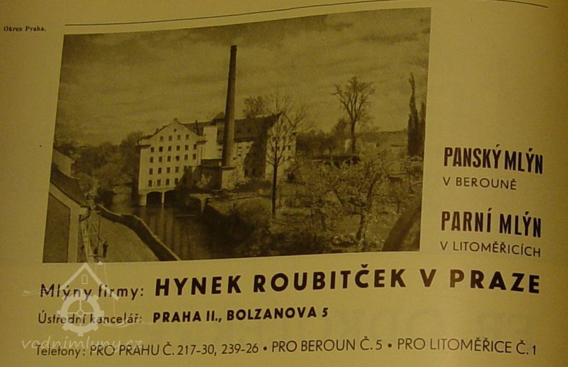 K největším mlýnům na Berounsku patřil mlýn Panský či Obecní, případně Sladový. Stál vpravo v těsné blízkosti Dolní či Pražské městské brány proti Zajíčkovu mlýnu a byl napájen říční vodou z mlýnské strouhy Berounky. Z Panského mlýna se kdysi čerpala říční voda vzhůru na baštu - vysuté věžovité hradební opevnění města - kde pro ten účel byla cínová nádrž, odkud se voda dřevěnými rourami rozváděla do dřevěných městských kašen.