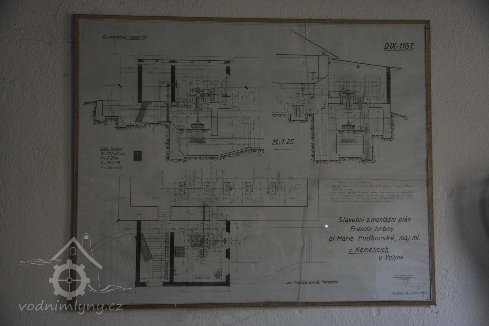 PopisV roce 1930 byla ve mlýně Francisova turbína o hltnosti 1020 l/s, na spádu 2,25 m, o výkonu 23,5 HP.