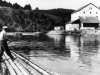 Mlýn s pilou. Dlouhá léta zde Stanislav Kuchař mlynařil a v roce 1938 se stal dokonce starostou. Jez na mlýně byl na Vltavě poslední, který měl uzavíratelnou propust. Kuchař ji nechal vystavět, když se stal starostou.