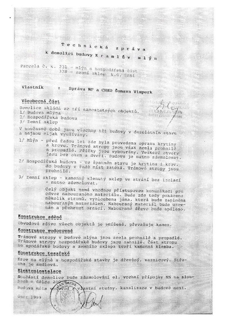 Nakonec se majitelem mlýna stala Správa NP a CHKO Šumava, která nechala mlýn roku 1999 odstranit zřejmě pro špatný celkový technický stav.
